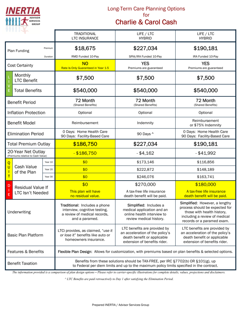 Which of these options would you recommend to Charlie and Carol to efficiently reposition their RMDs to address Long-Term Care risk while preserving legacy assets?