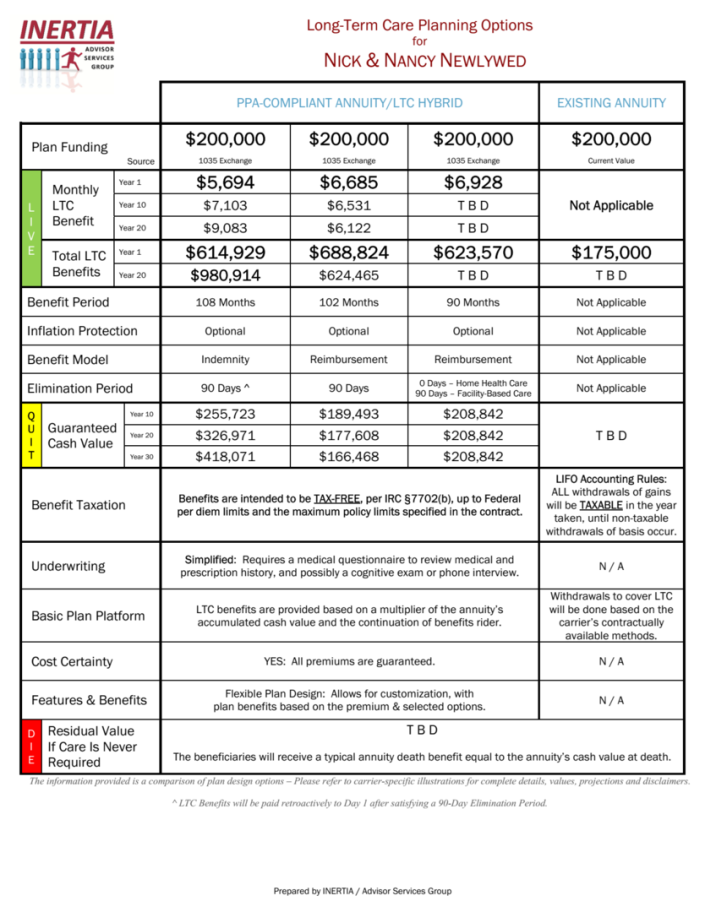 Which option below achieves their LTC planning goal by maximizing the existing annuity?