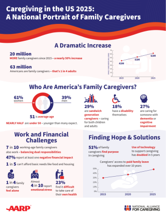 The financial toll on family caregivers is severe, and the situation will only get worse as those 75 million boomers get older. According to the National Alliance for Caregiving, one in five caregivers has been forced to move in with the person they are caring for simply to manage expenses. Even then, cost-cutting often isn’t enough. Nearly half of working caregivers report that ongoing care-related expenses have exhausted their savings, directly undermining their own financial security and retirement plans. On average, family caregivers supporting someone over age 50 spend more than $5,500 per year out of pocket on costs not covered by insurance or Medicare — an amount that exceeds 10% of the average caregiver’s income, according to AARP.