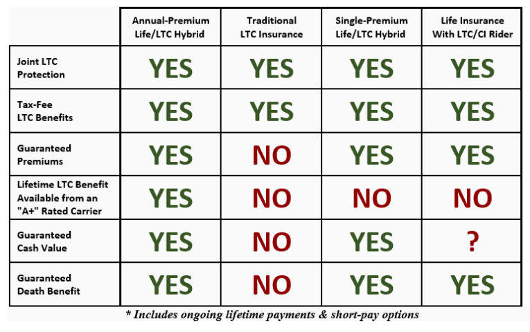Setting that aside, the table below looks at five features of LTC planning solutions and how those compare from one product to one another. If a client wanted most or all of these features, then a recurring premium hybrid solution may, in fact, be a very good choice to consider......