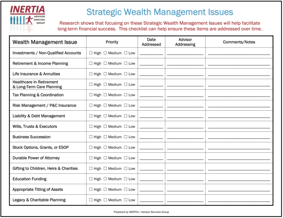 So yes, Long-Term Care Planning is your job, and you can download the "Strategic Wealth Management Issues" Worksheet below to prioritize it based on your advisory role....
