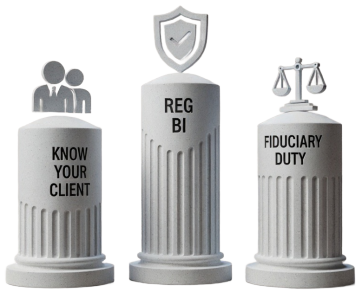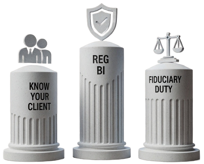 Whether the firm, rep, or advisor operates under Know Your Customer (KYC), Regulation Best Interest (Reg BI), or a formal fiduciary standard, each framework requires that advisors: