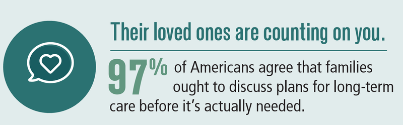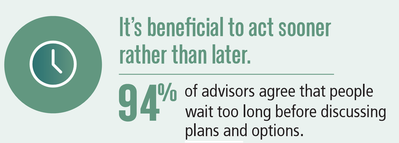 before. As they do, they're counting on advisors to help them feel confident about their future, and the overwhelming majority believe they should be discussing long-term care